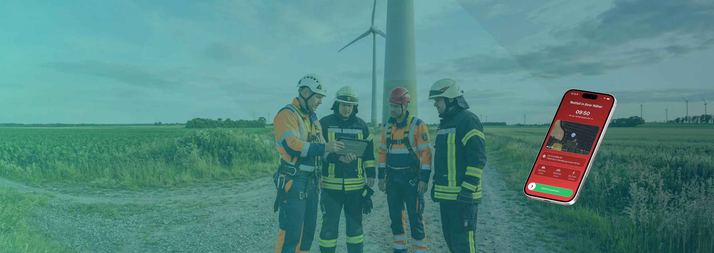 Die ErWin-App ergänzt diese Konzepte gezielt: Sie ermöglicht eine schnelle, zentral koordinierte und firmenübergreifende Alarmierung qualifizierter Ersthelfer, die mit den Gegebenheiten von Windkraftanlagen vertraut sind und sich in unmittelbarer Nähe zum Einsatzort befinden.